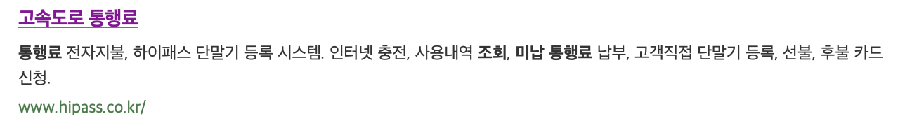 먼저 다음이나 네이버에서 고속도로 통행료라고 검색하면 하이패스 홈페이지가 나옵니다.