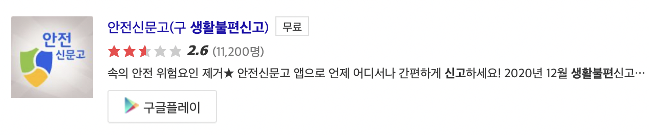 바로 안전신문고라는 앱인데요, 현재 안드로이드와 아이폰 모두 다운이 가능하며 무료앱으로 이용할 수 있습니다. 생활속의 안전을 위협하는 요인을 내가 직접 신고할 수 있도록 만들어진 앱입니다.