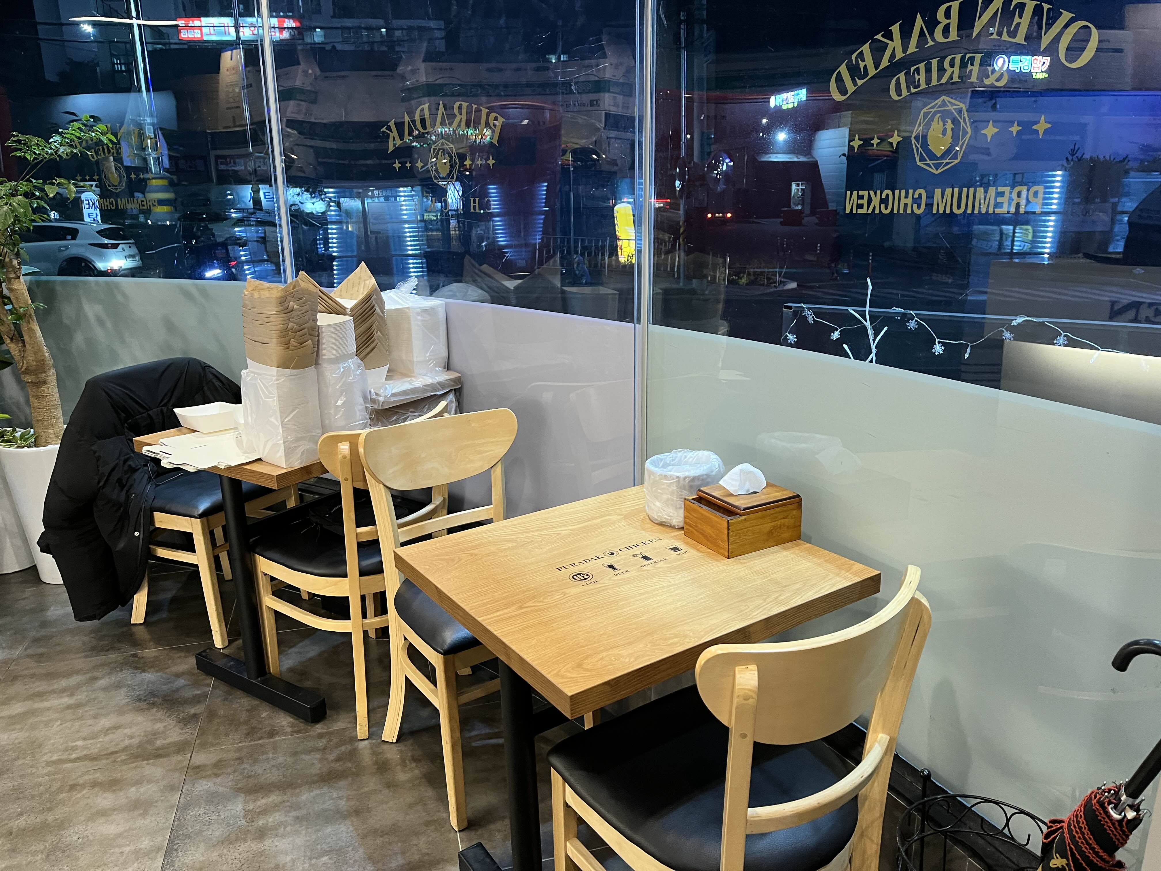 푸라닭 치킨 직산점에는 4-5개의 테이블도 있어서 맥주와 함께 즐길 수도 있습니다. 저는 오늘 집에가서 영화보면서 먹으려고 포장으로 말씀드렸습니다!