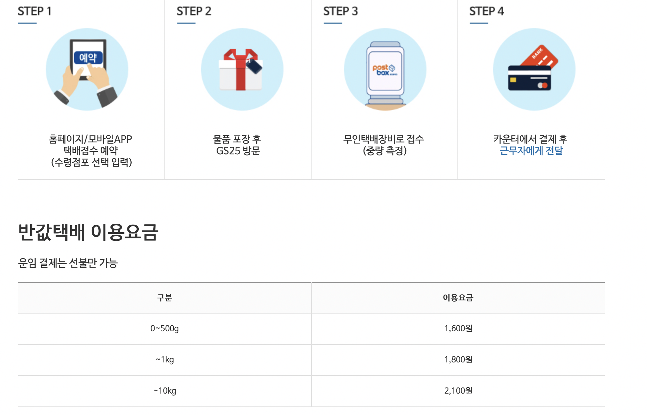 그리고 일반 국내택배보다 거의 반값이나 저렴한 1600원 반값택배역시 이용 가능합니다. 거리에 상관없이 무게에 따라 이용하는 반갑ㅌ택배입니다.
