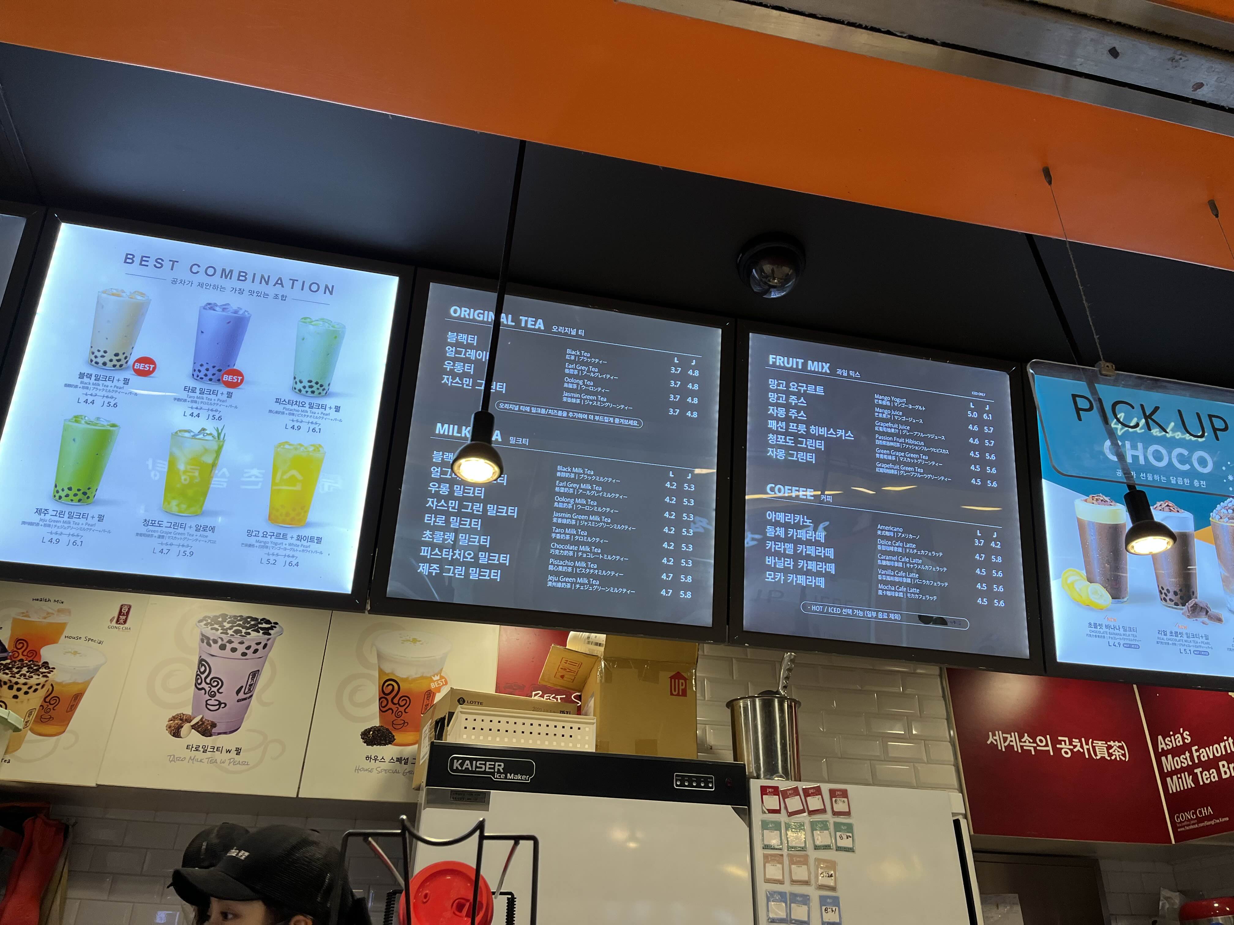 공차에서 가장 추천하는 베스트메뉴로는 블랙밀크티+펄 / 혹은 타로밀크티 +펄 메뉴로 4400원 동일한 가격입니다.