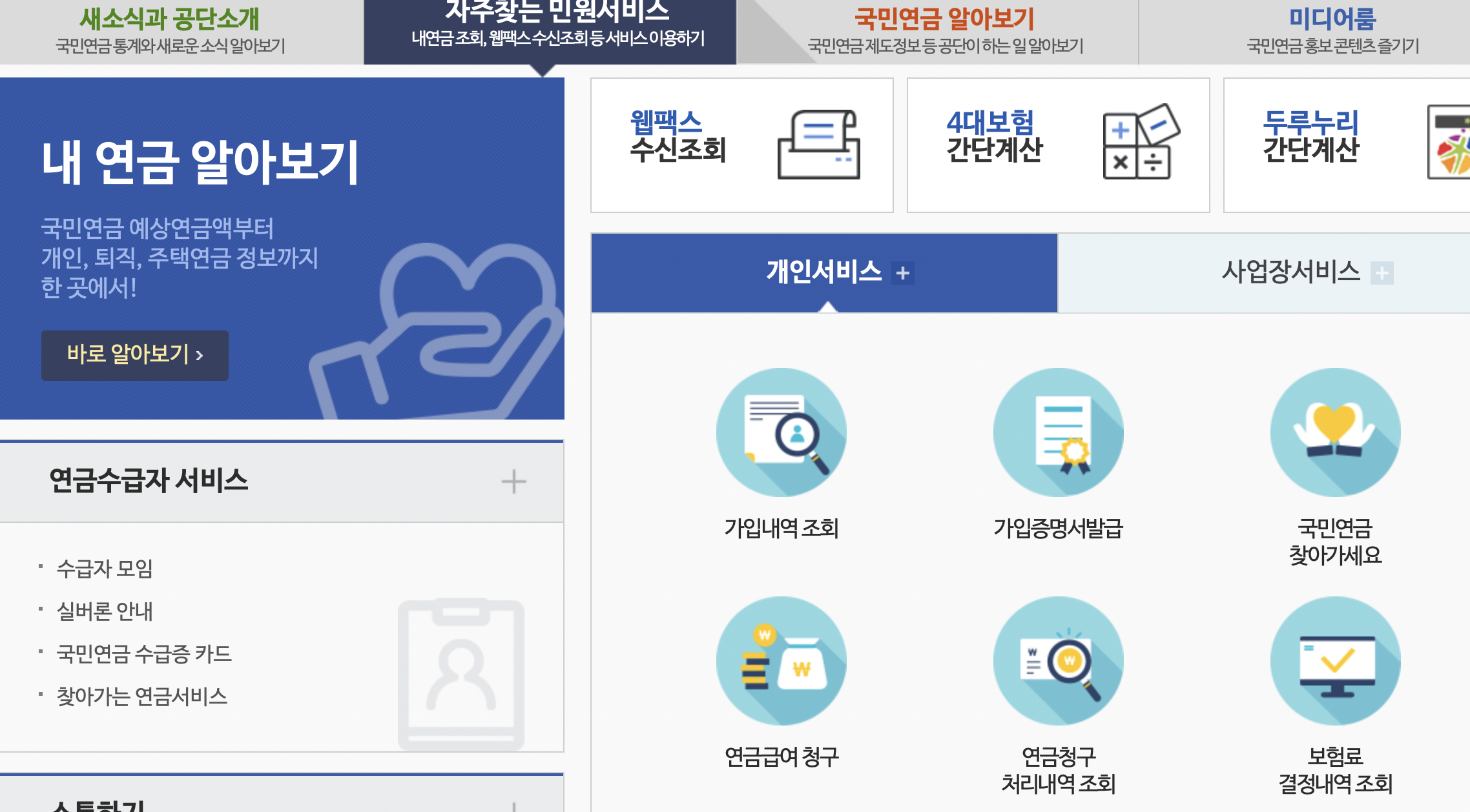 먼저 포털사이트에서 국민연금공단 사이트를 검색해서 들어갑니다.