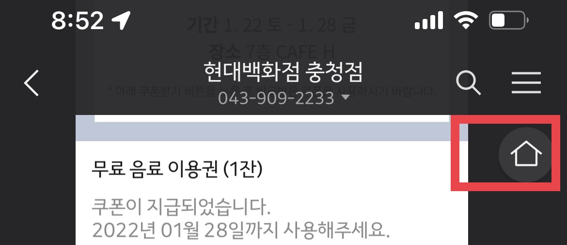 현대백화점 충청점 무료 커피서비스 이용하는 방법