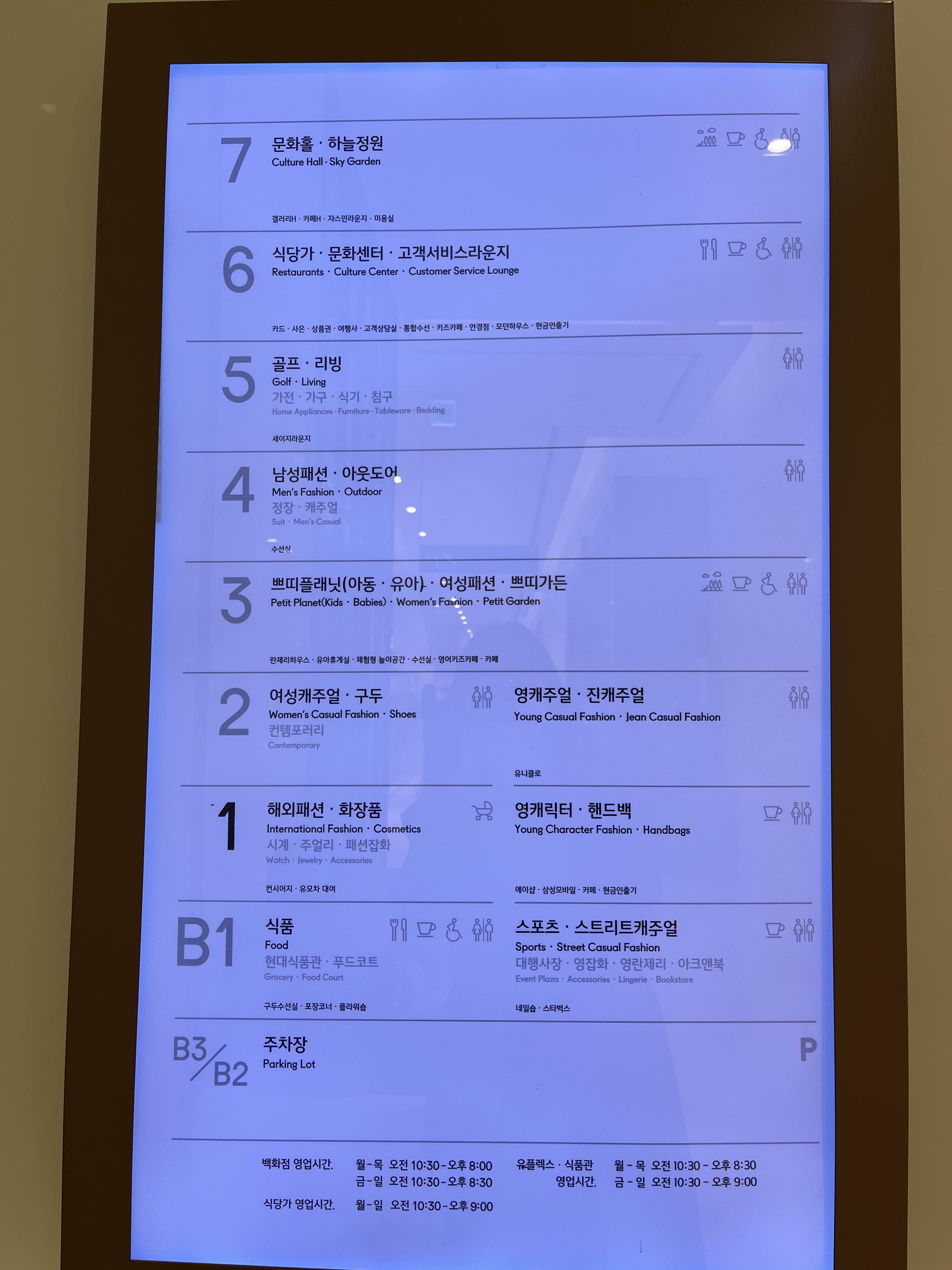 그러면 현대백화점 충청점의 7층으로 올라가시면 됩니다. 하늘정원이라는 곳도 있고 카페도 있어서 쇼핑 후 쉬기에 아주 좋은 곳인것 같습니다.