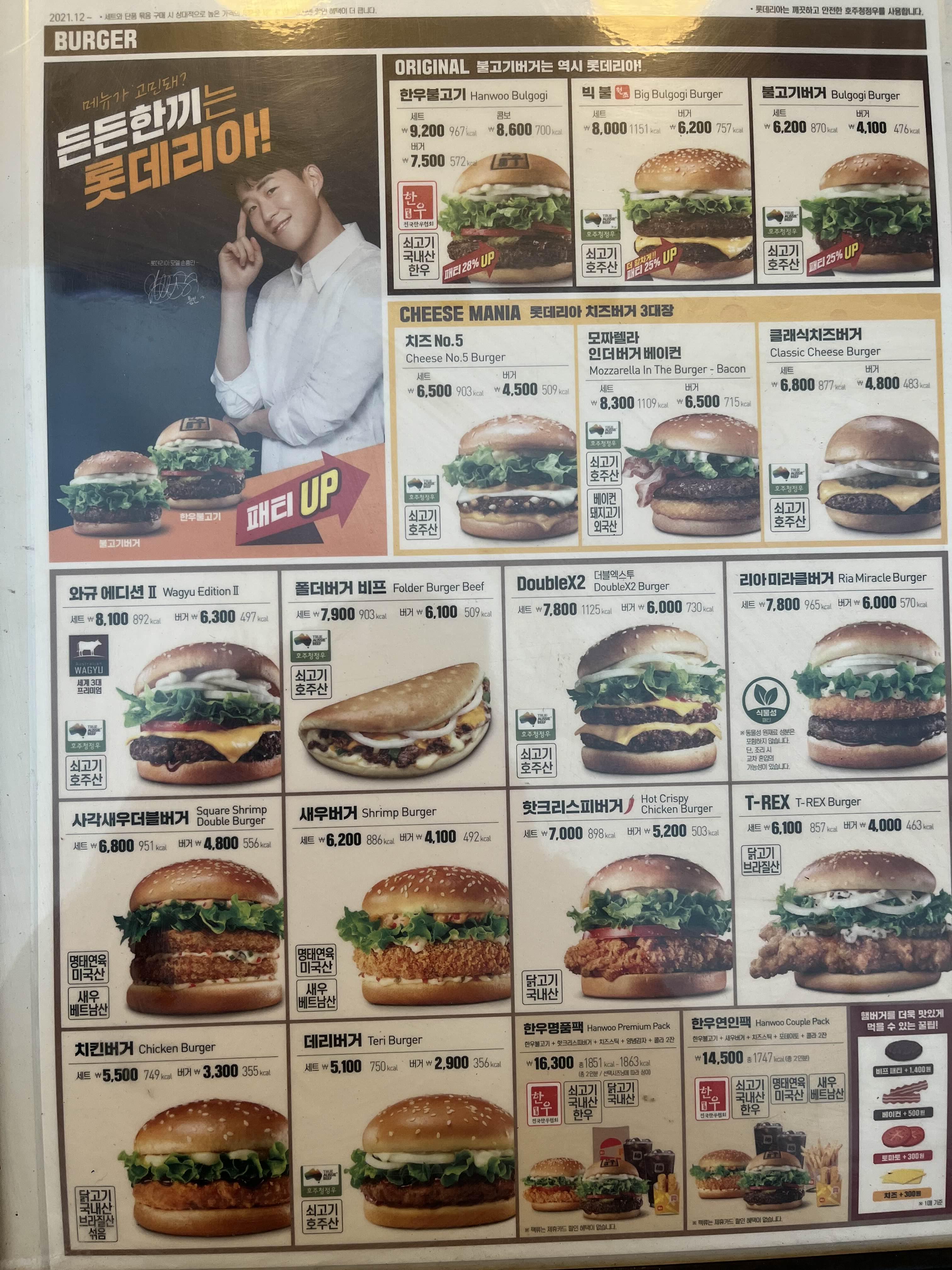 어렸을적에 불고기버거를 먹고 너무 맛있어서 충격에 빠졌었습니다. 롯데리아 대표메뉴 불고기버거는 세트가격이 6200원이고 한우불고기 셋트는 9200원 입니다. 치즈버거는 3종류가 있는데 치즈 넘버5 셋트가격은 6500원, 모짜렐라 인더버거 베이컨은 8200원입니다.
