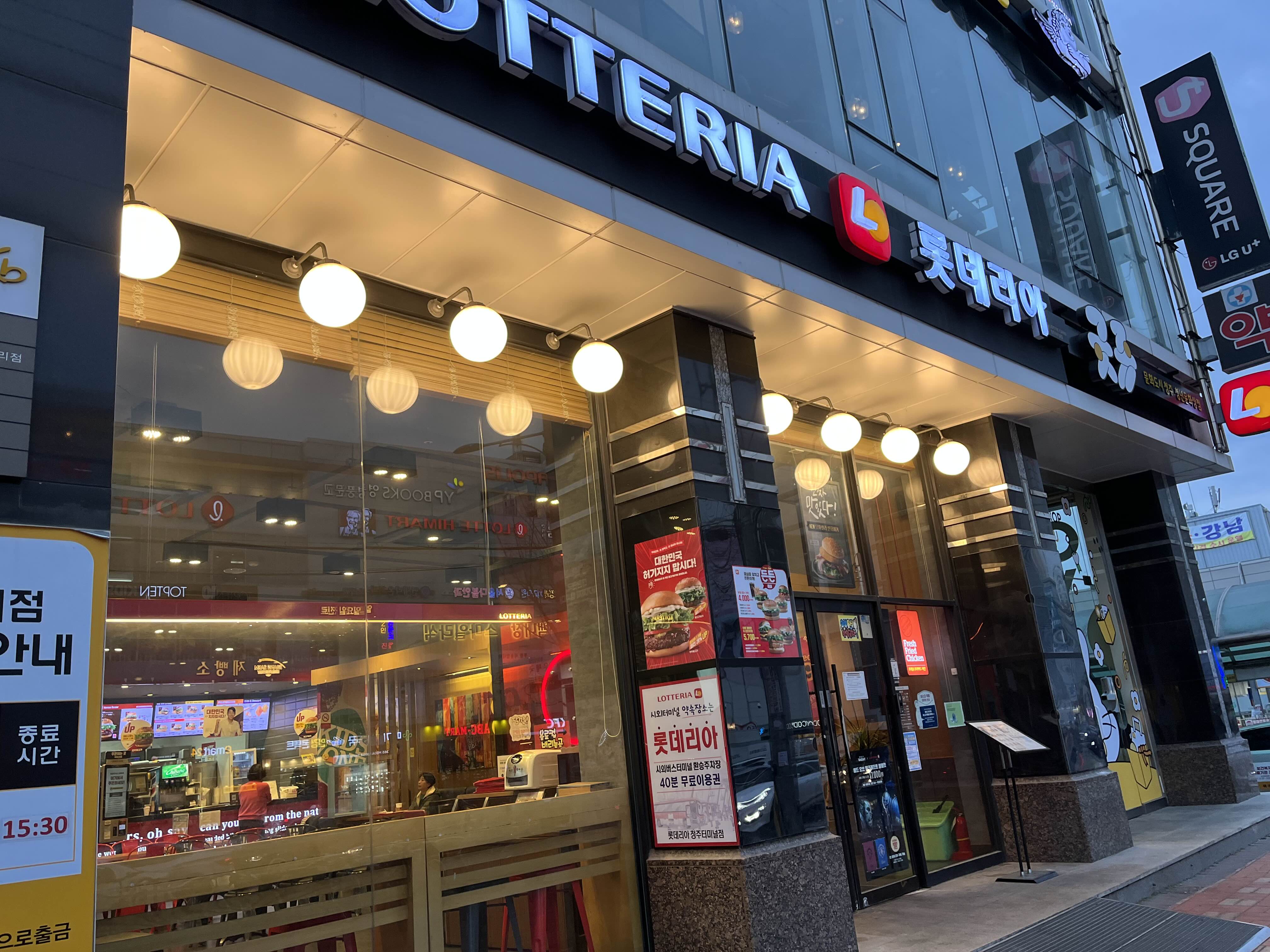 롯데리아는 어딜가나 홀이 넓은 것 같습니다. 저녁이 되니 조명도 켜저서 나름 분위기가 좋은데요?