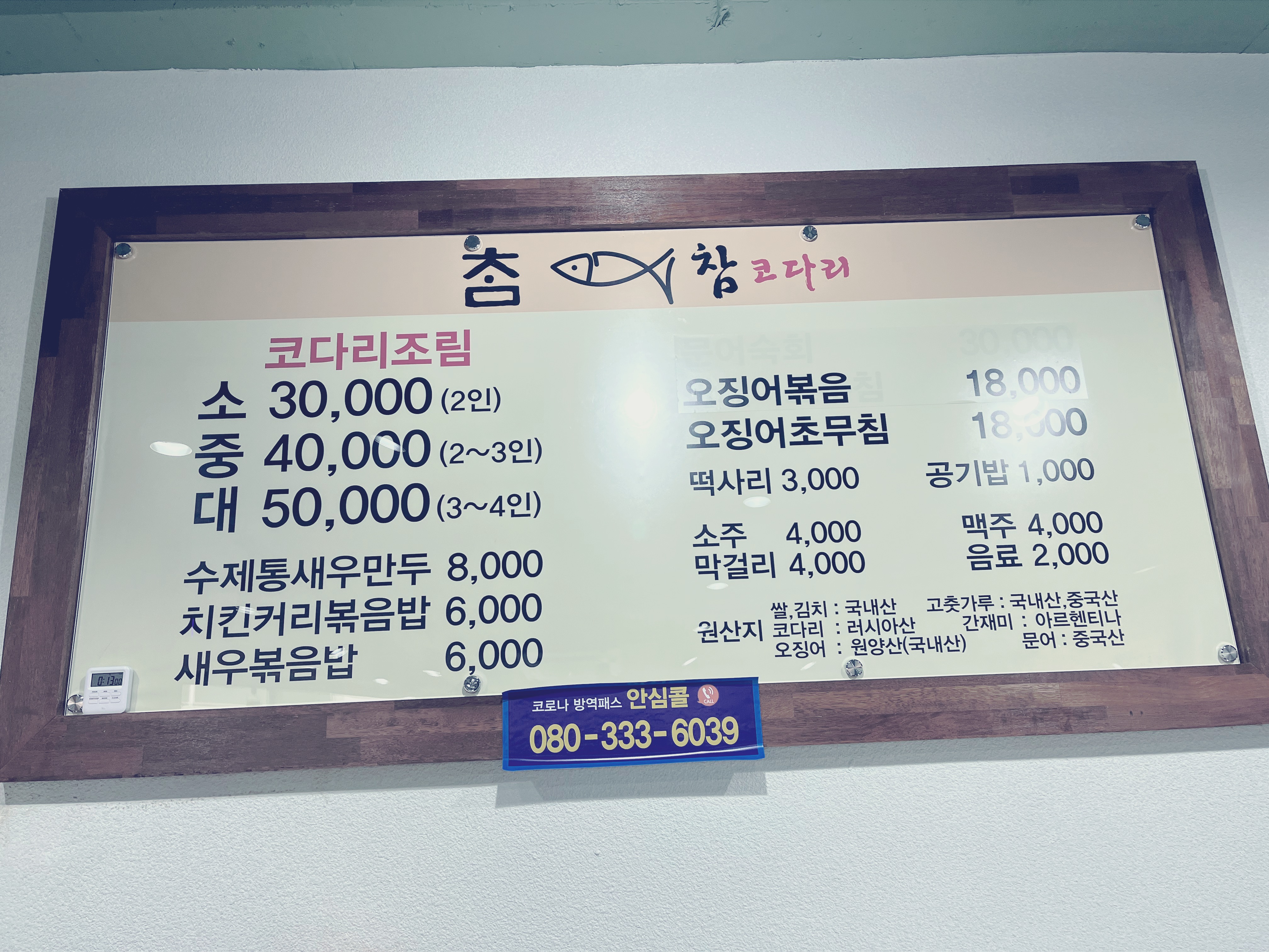 참코다리 메뉴판이예요.