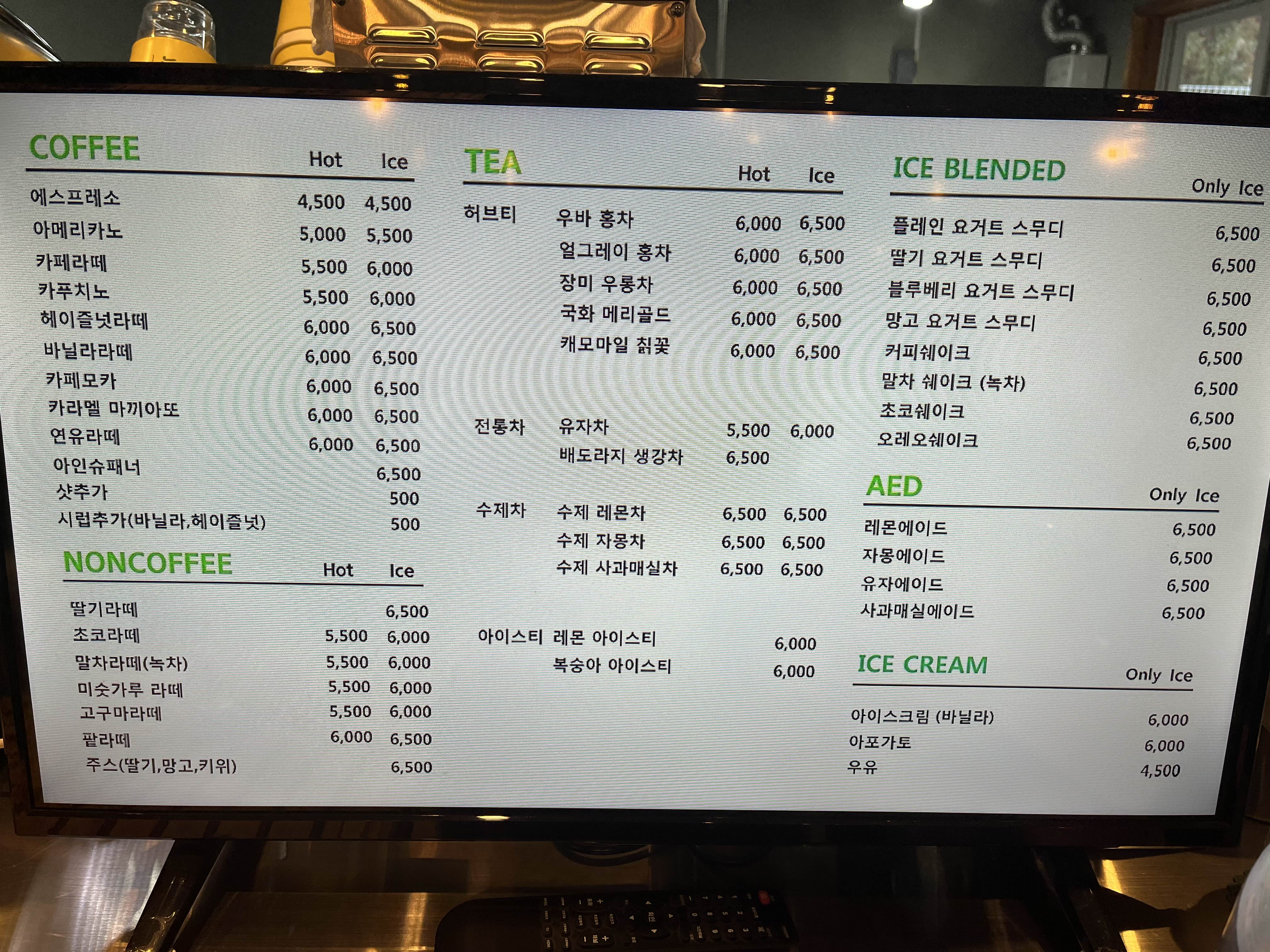 천안근교 광덕산 드라이브코스 카페 온더 산자락 메뉴가격