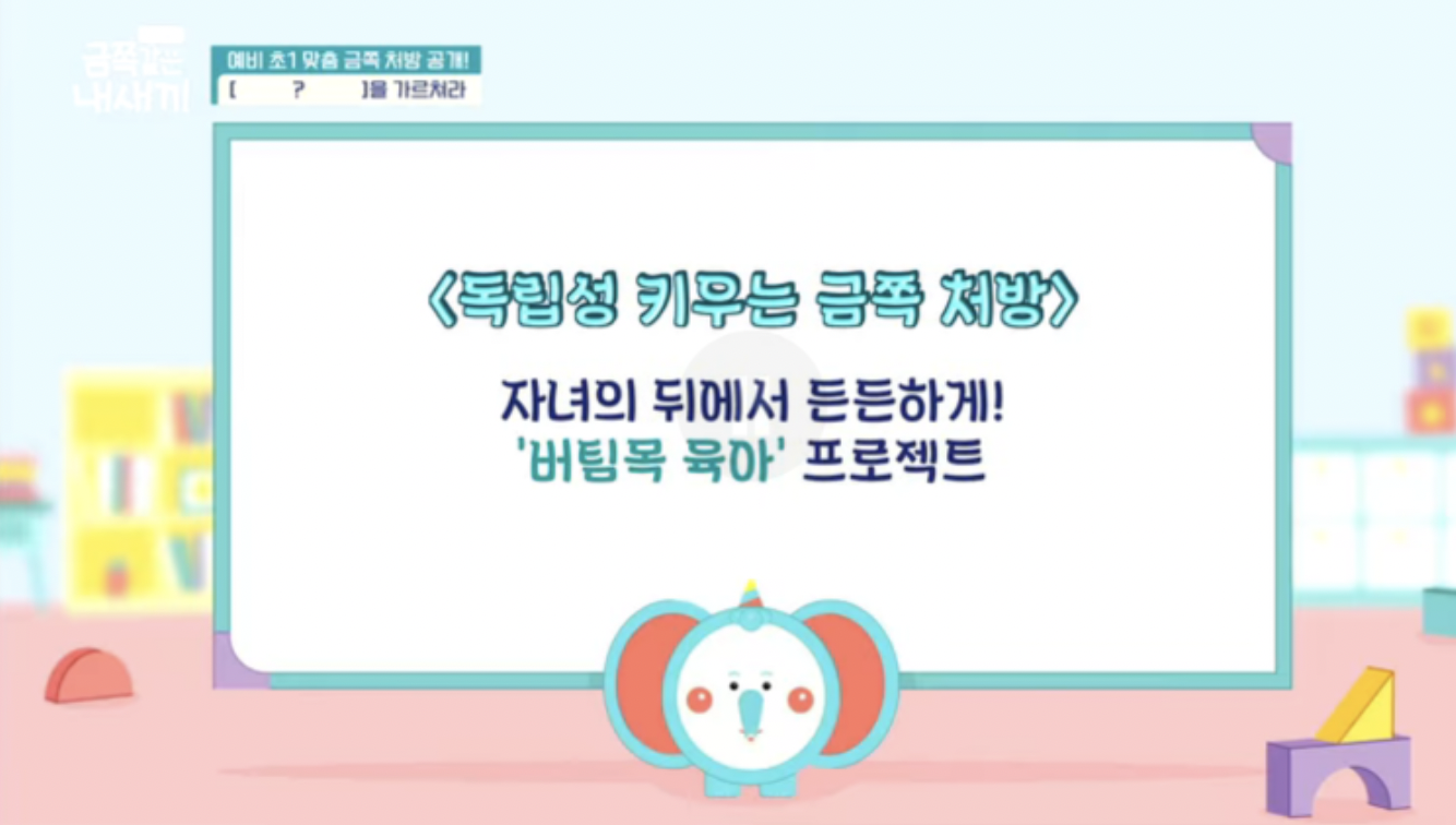버팀목 육아 프로젝트를 말씀하셨어요. 모든 과정에서 도와주긴 하지만 아이가 할 수 있는 것은 하도록 하고 만약 실수하더라도 다시 배우도록 도와주라는 것입니다. 아이의 성장에 더 큰 도움을 줄 수 있겠네요.