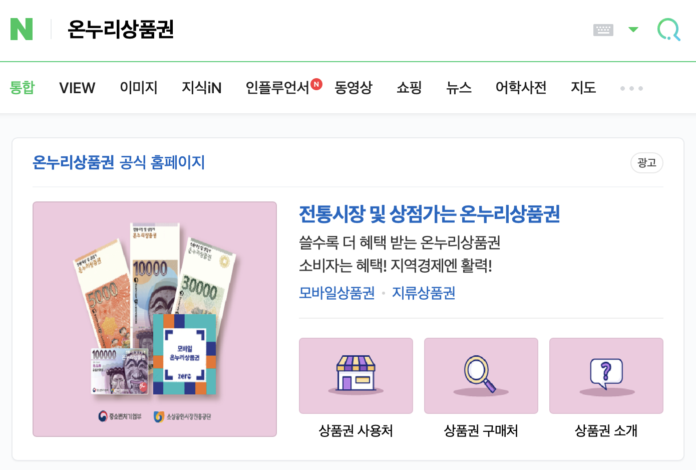 먼저 네이버나 다음에서 온누리 상품권을 검색합니다.