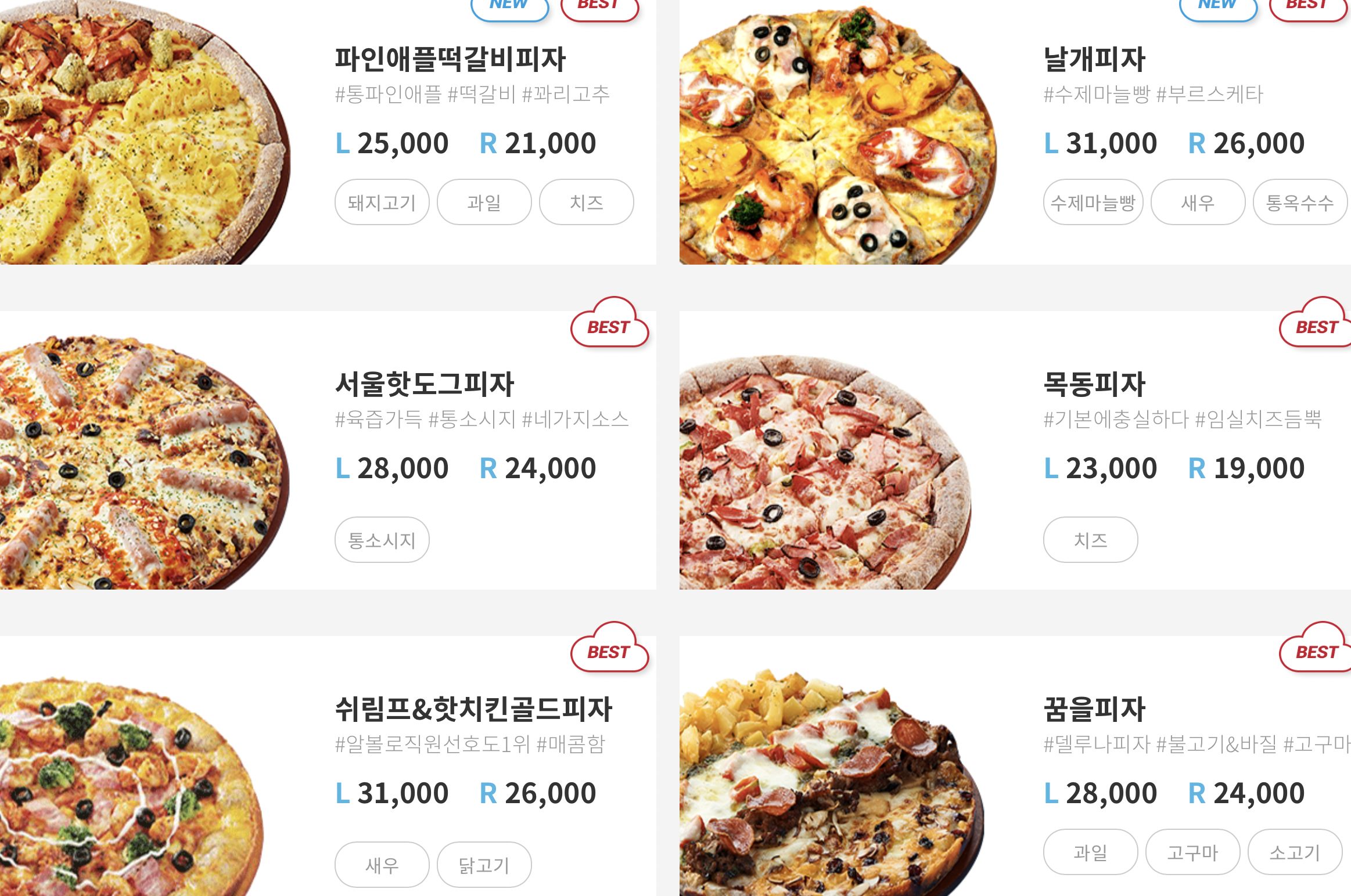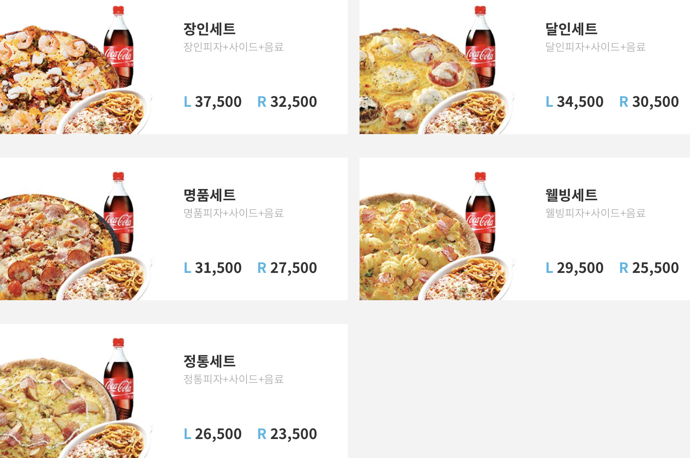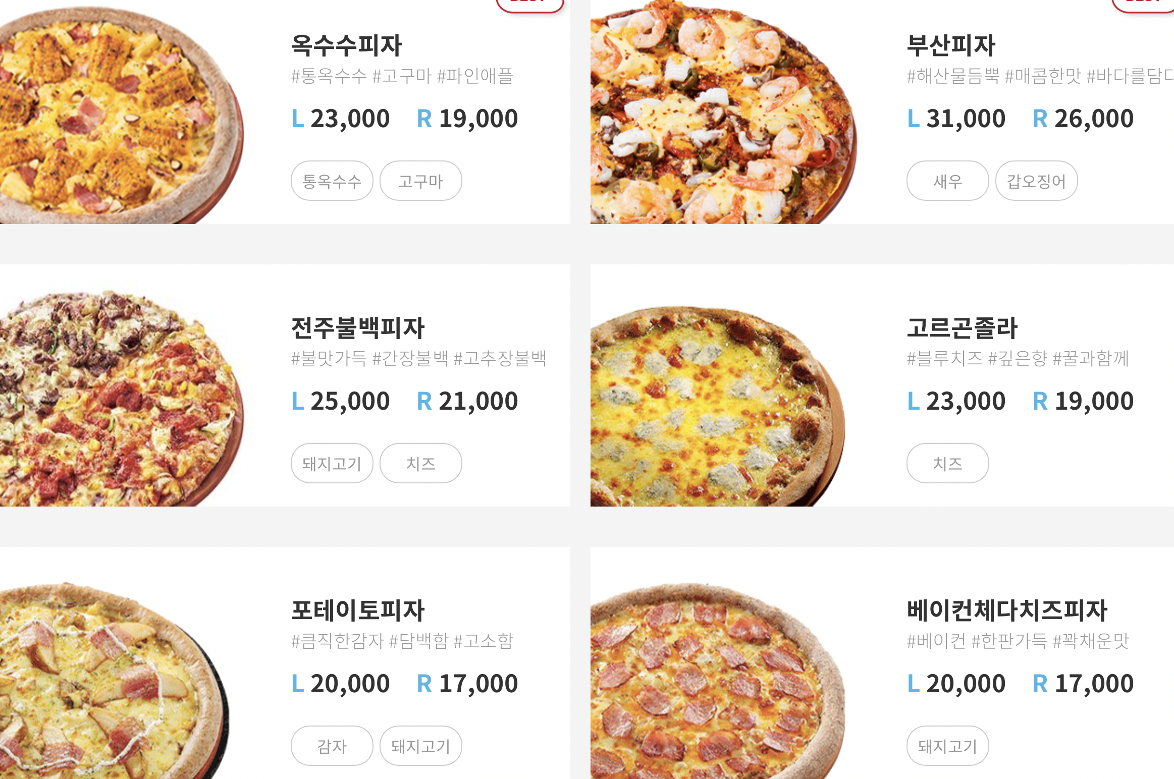 그리고 위의 피자들은 어느 피자집에나 있는 아주 기본적인 메뉴들입니다. 새로운거 도전하기 싫어하시는 분들이 선택하시면 좋겠어요.