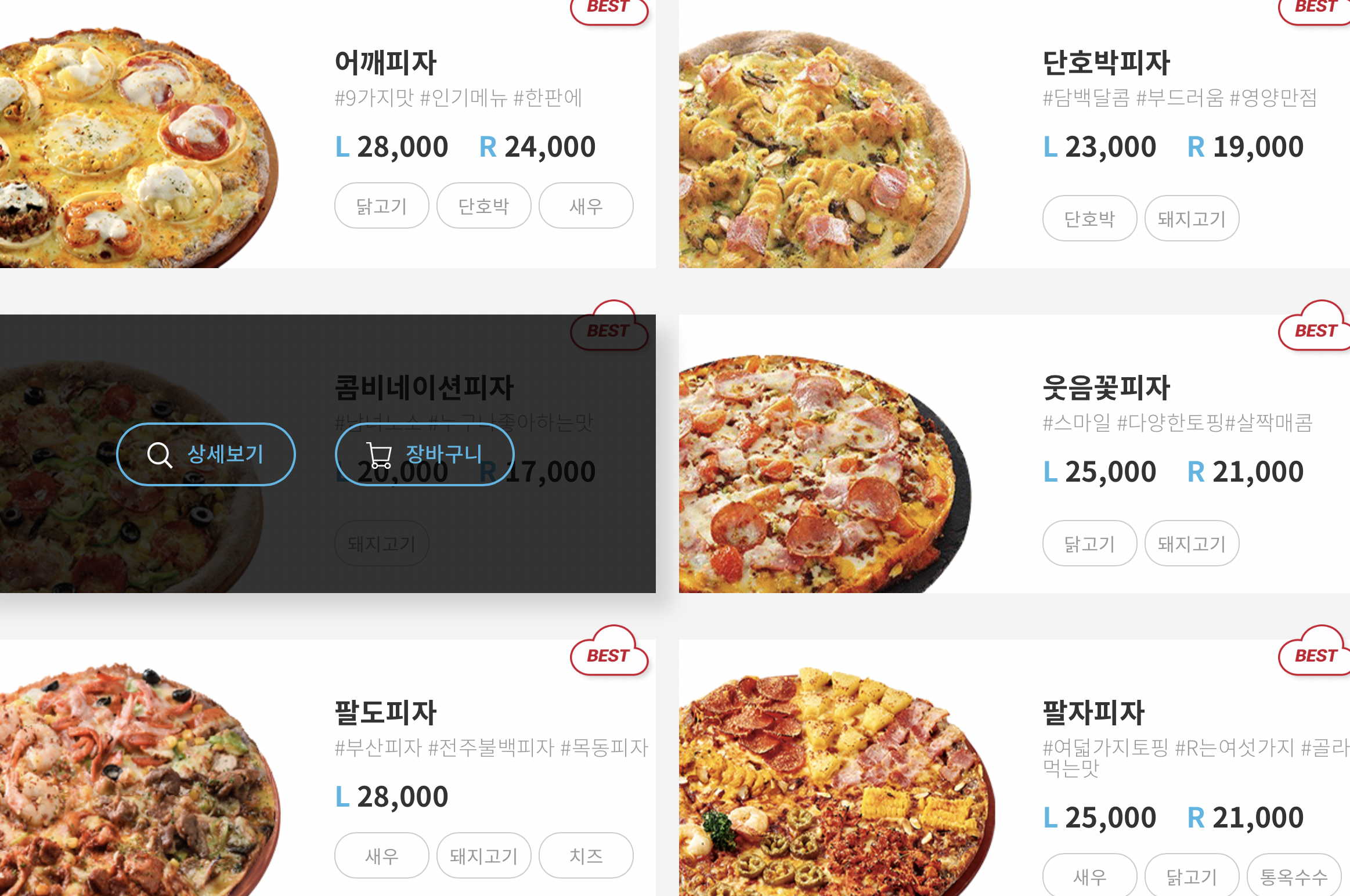 어깨피자 웃음꽃피자 팔자피자 이름을 너무 센스있게 지은것 같은데요. 특히 팔자피자나 팔도피자는 피자별 토핑을 다양하게 선택할 수 있어서 1인가구 혹은 2인-3인 가구에게 적절한 피자일 것 같습니다.