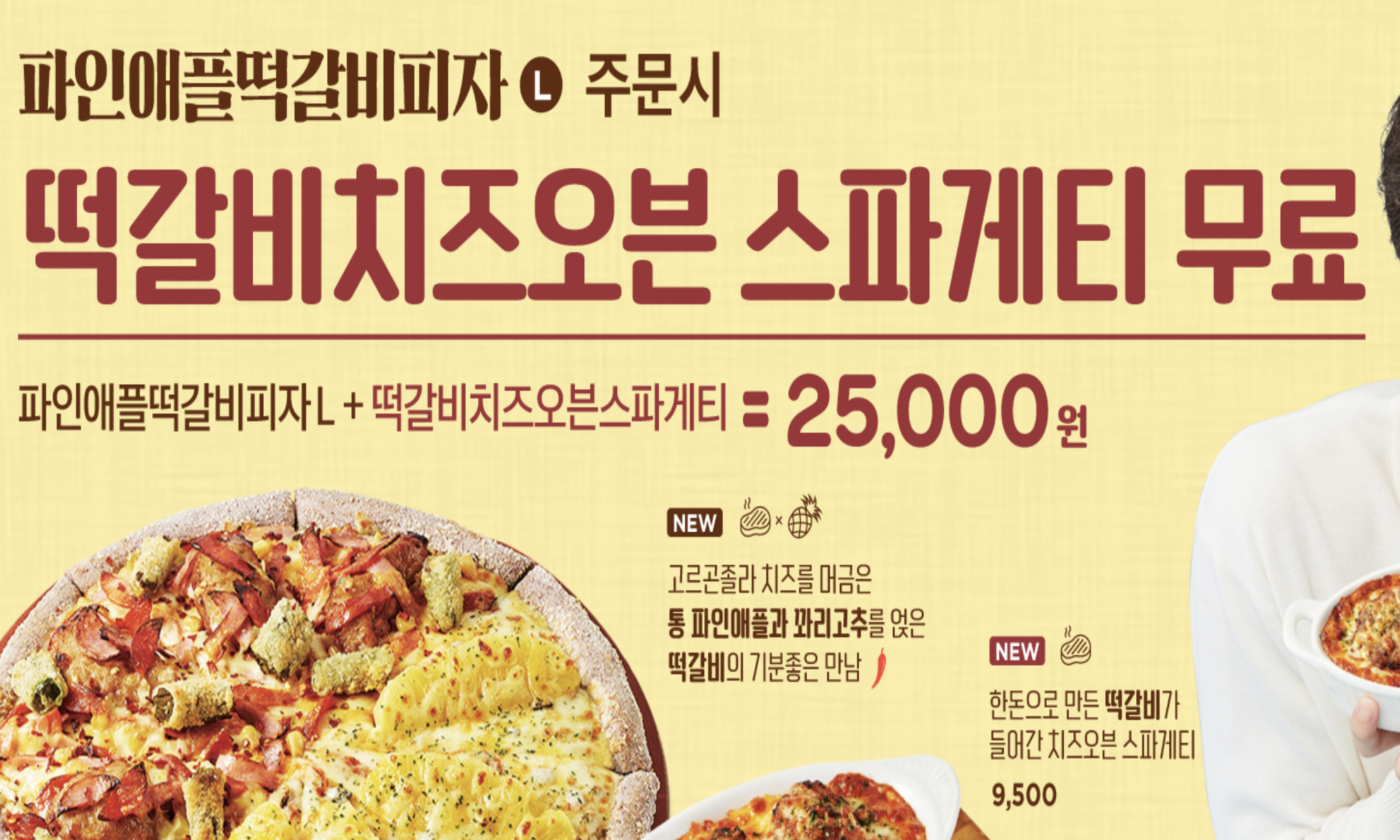 피자알볼로는 파인애플떡갈비피자를 밀고 있는 것 같아요. 지금 피자알볼로파인애플 떡갈비피자 라지사이즈를 주문하면 스파게티가 무료로 따라옵니다! 완전 주말 한끼 식사로도 좋겠는데요-