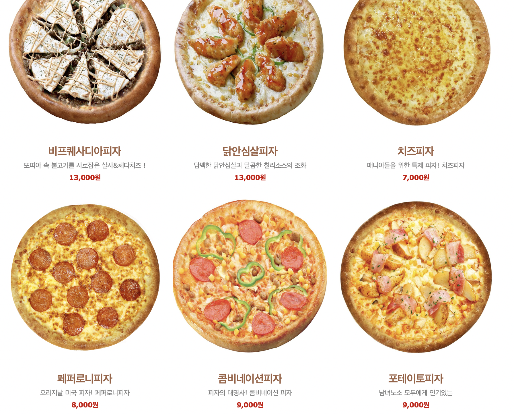피자스쿨 피자가격이 모두 15000원 이하로 아주 저렴합니다.