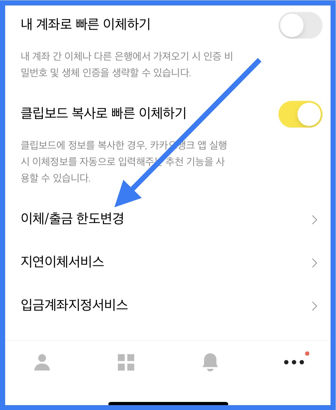 카카오뱅크 이체한도 증액 조회하는 방법