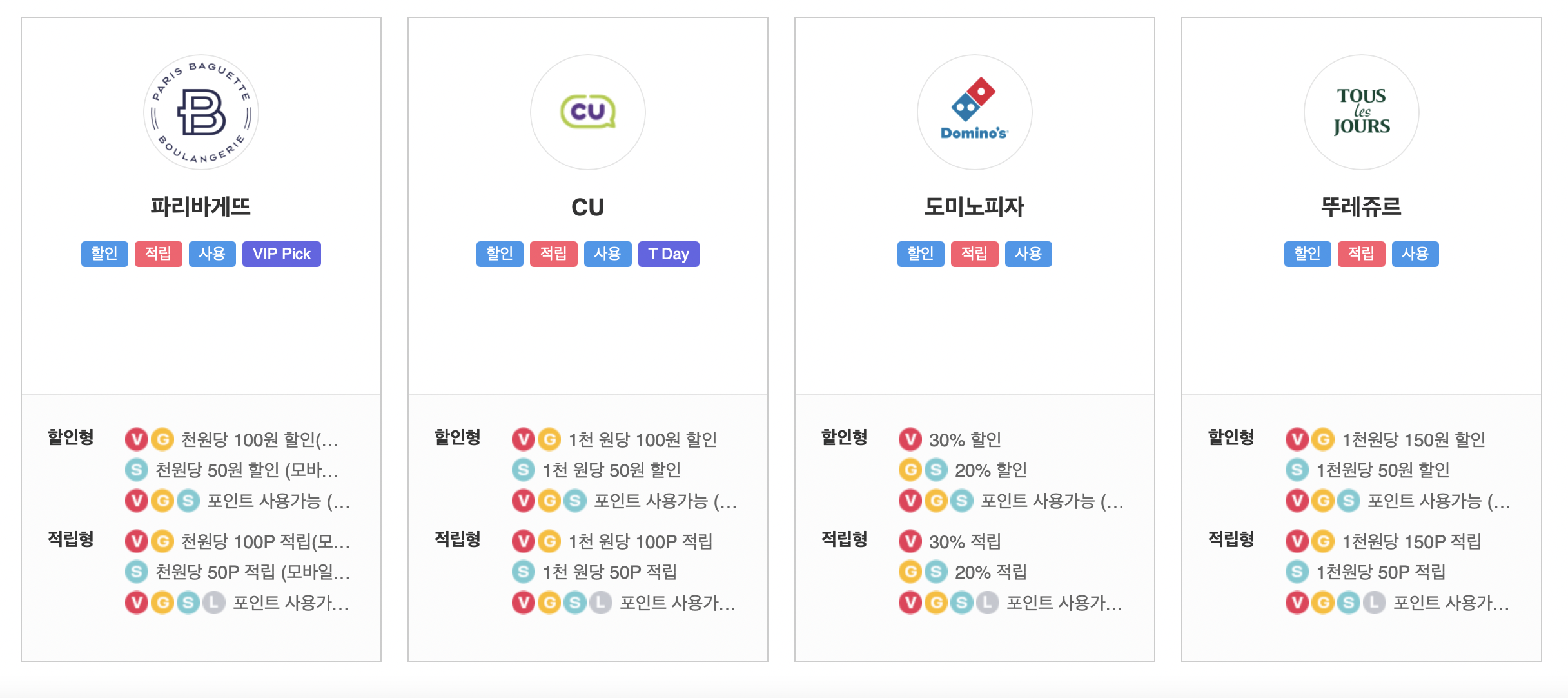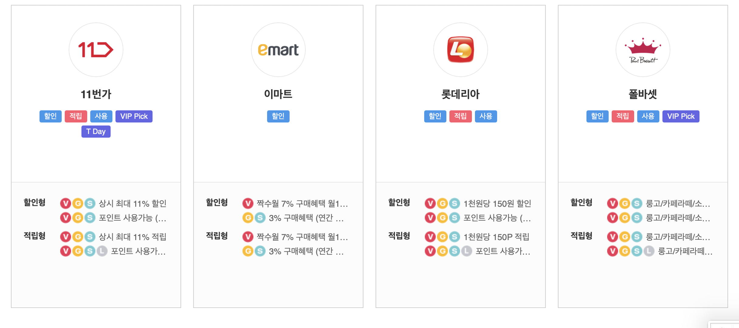 11번가와 이마트 , 롯데리아와 폴바셋 역시 할인이 가능합니다.
