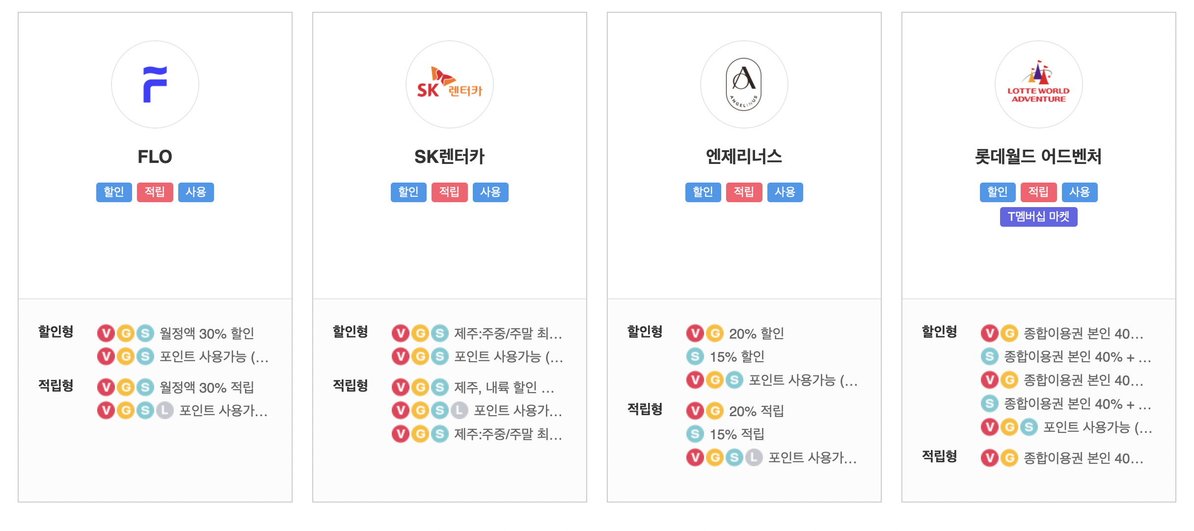 이외에 할인하는 가맹처가 많으니 여기에 없다면 티월드 홈페이지에서 더 다양하게 확인하실 수 있습니다.