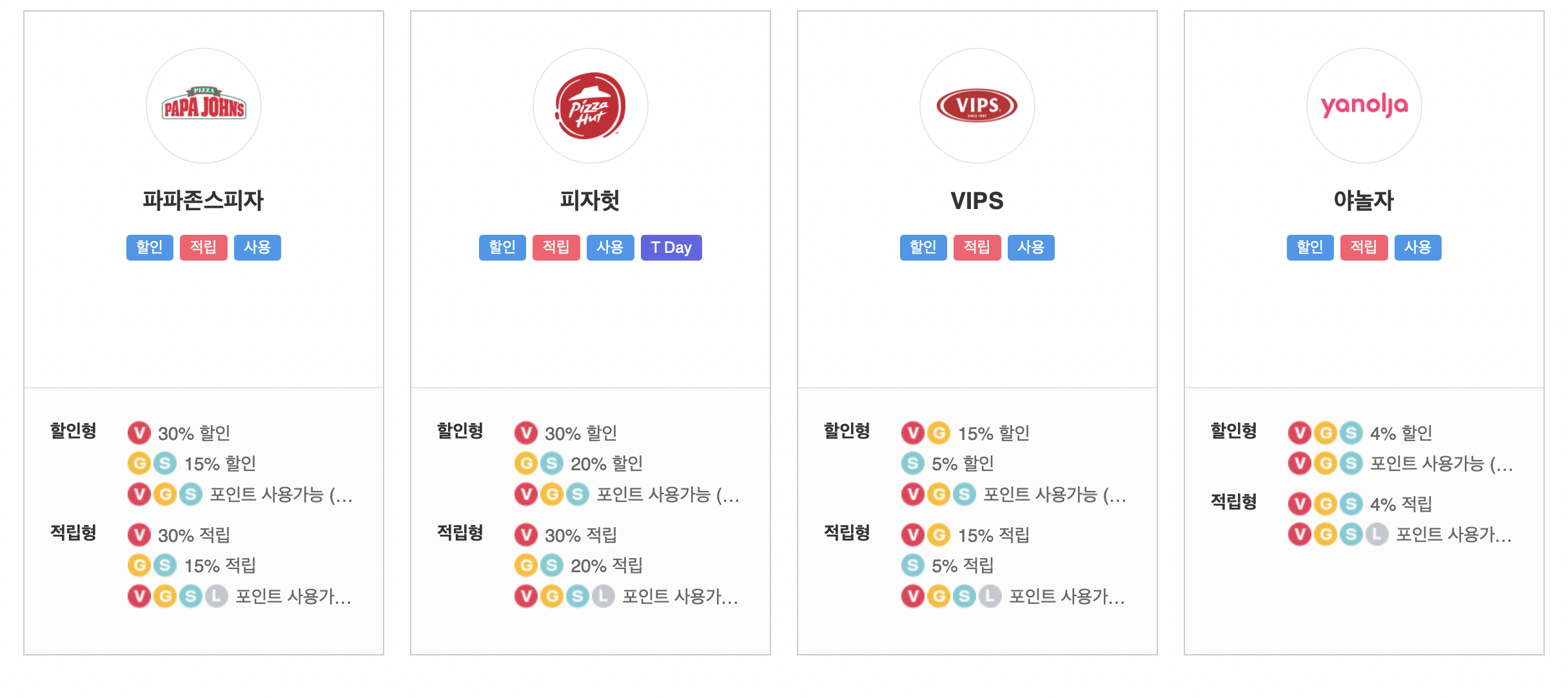피자헛이나 빕스도 할인이 되고 야놀자역시 할인이 가능하네요.