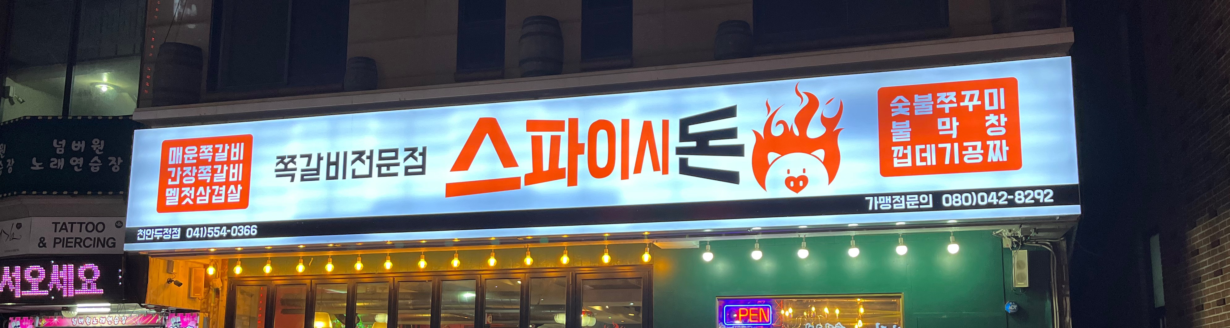 매운쪽갈비 전문점인 스파이시돈, 간판부터 강렬함이 느껴집니다.